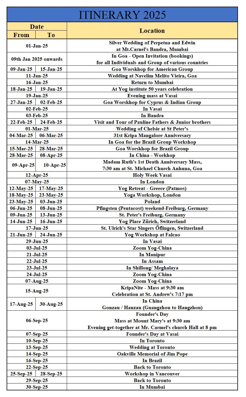 FR. JOE'S ITINERARY 2025/2026